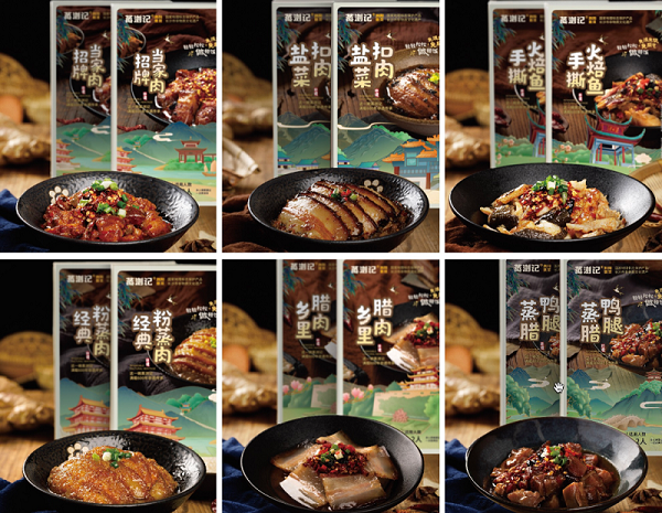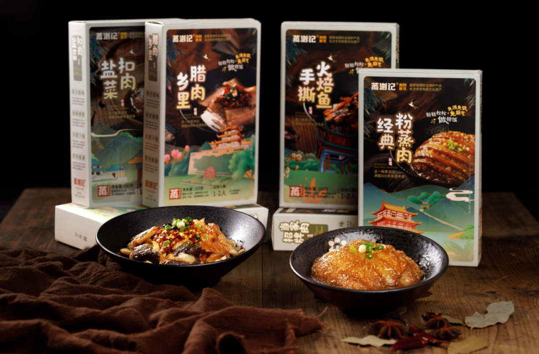 此次蒸瀏記推出的預制蒸菜,定位高端市場,以優異品質為核心追求,力求對非遺技藝的更好傳承,讓更多消費者品嘗到正宗瀏陽蒸菜。產品包括手鹽菜扣肉、撕火焙魚、鄉里臘肉、經典粉蒸肉等多款產品,和門店菜品一樣的配方,一樣的味道。預制蒸菜實現了常溫保存,不添加防腐劑,一如包裝上的推介語:“不占用冰箱空間”。