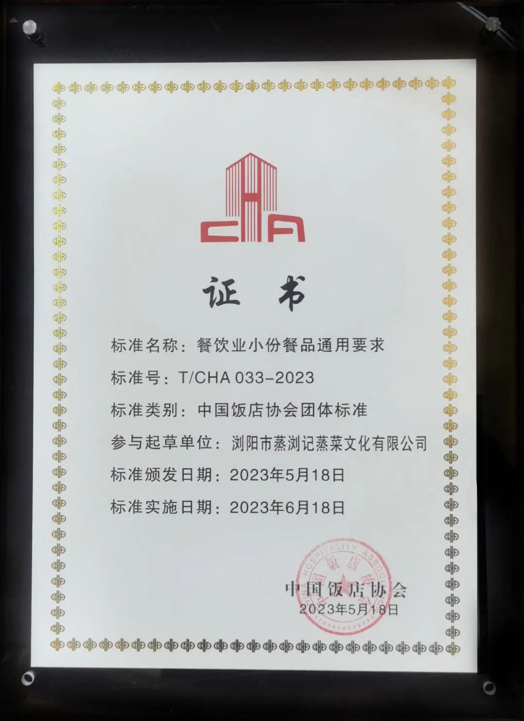 作為瀏陽蒸菜產業龍頭企業,一直倡導踐行小碗蒸菜的蒸瀏記,積極參與這一團體標準的起草,為推動餐飲行業小份餐品的發展貢獻智慧和力量。