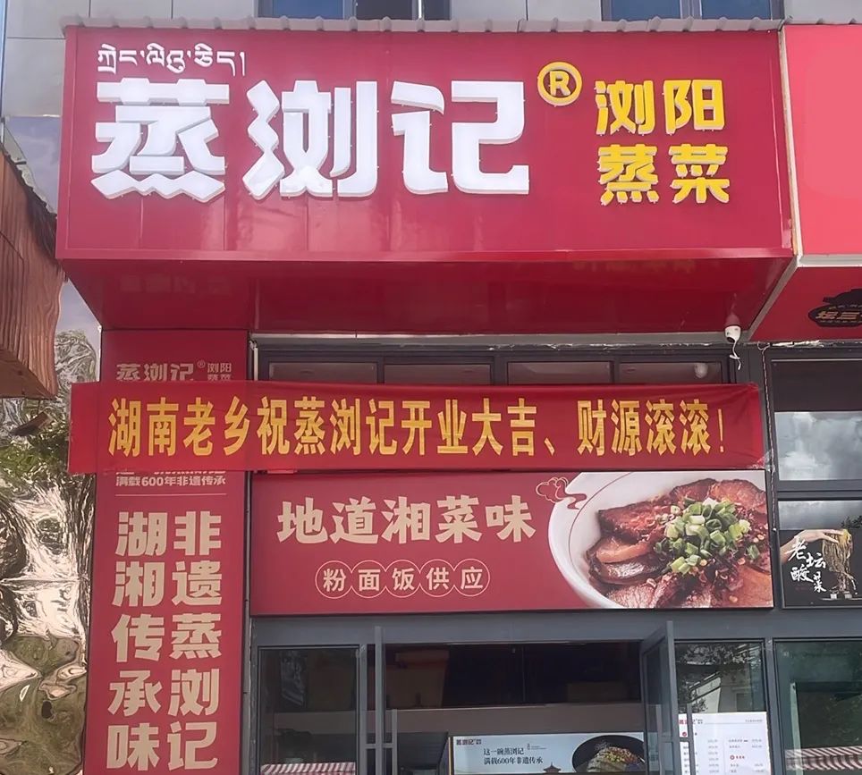 本月初,在西藏旅游的瀏陽(yáng)人夏傳樹,發(fā)現(xiàn)了一家蒸瀏記瀏陽(yáng)蒸菜,“在西藏吃得最香的一頓飯。”這家從布達(dá)拉宮出發(fā)車程不過十分鐘的蒸瀏記,是目前距離蒸瀏記本部最遠(yuǎn)的門店,試營(yíng)業(yè)至今剛滿月。
